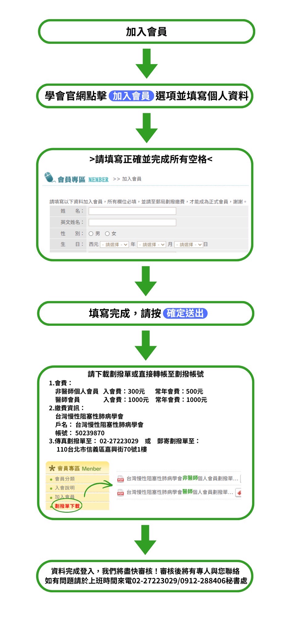 郵局劃撥帳戶 - 戶名:台灣慢性阻塞性肺病學會 帳號:50239870