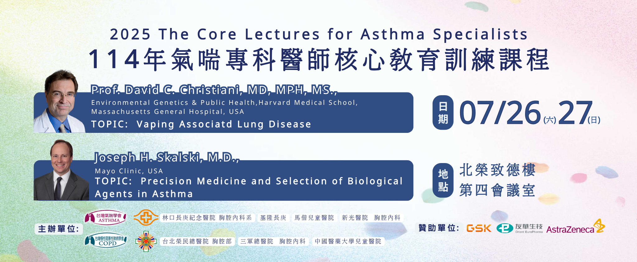 114年氣喘專科醫師核心教育訓練課程 2025 The Core Lectures for Asthma Specialist s 2025/7/26(六)27(日)