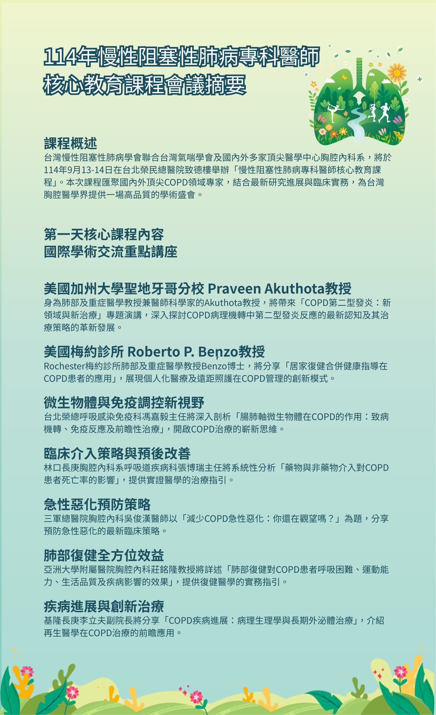 The Core Lectures for COPD Specialists 114年9月13日(六)-9月14日(日) (課程內容詳見下方摘要說明)